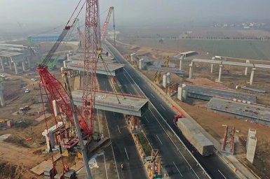 方唐高速跨蘭南高速鋼箱梁項目跨路施工吊裝