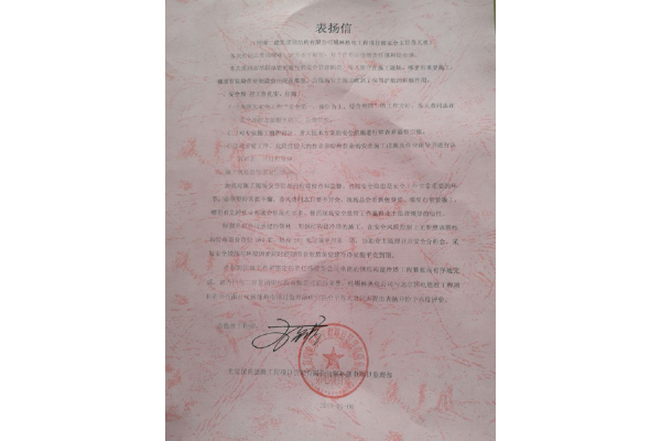 102019.01北京國電德勝工程項目管理有限公司錫林熱 電項目監(jiān)理部給鋼構(gòu)公司發(fā)來表揚信 -